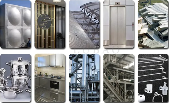 | Hairline | Finished by continuous linear brushing | Architecture,industries,Escalators, Kitchen ware, Vehicles. | ||